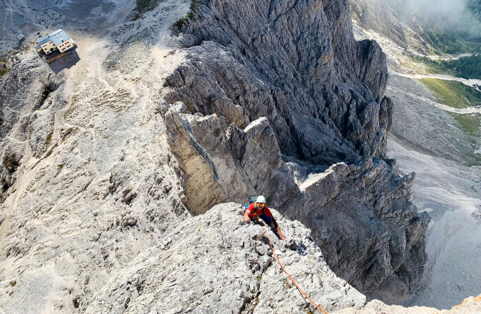 Learning by doing – so lautet die Devise im Englischen. Bei uns sagt man vielleicht sinngemäß: Übung macht den Meister, die Meisterin. Egal in welcher Sprache: Die Praxis und die Übung sind das A und O, vor allem im Bergsport. Deswegen lege ich größten Wert auf eine fundierte Ausbildung und biete Kurse in allen Sparten des Alpinismus an. Ihr lernt die grundlegenden Seil- und Klettertechniken, Fertigkeiten und Handgriffe von einem erfahrenen Berg- und Skiführer und Trainer Sportklettern. Es ist nicht notwendig, sich mit extrem viel Wissen zu belasten. Übung ist der Schlüssel. Entscheidend ist, das vorhandene Wissen im richtigen Moment und in der richtigen Kombination anzuwenden. Das gilt für das richtige Sichern beim Sportklettern, dem sicheren Standplatzbau beim Klettern genauso wie für die lose Rolle beim Spaltensturz am Gletscher oder die Verschütteten-Suche auf Skitour im Winter.